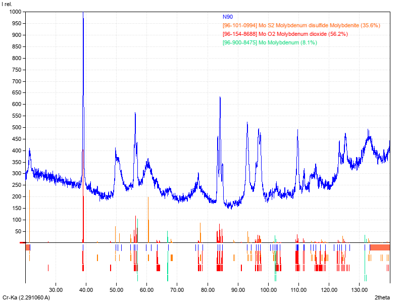 Measure XRD pattern on Difrey 401 device in a 20-140° range using Cr Kα souce and 300 s exposition